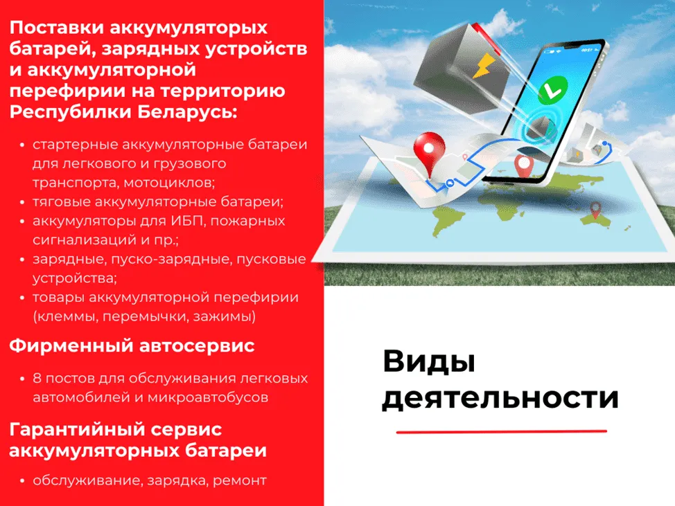 РИМБАТ - это прямой поставщик аккумуляторных батарей для автомобилей, сельскохозяйственной и промышленной техники. С момента основания компании мы стремимся к постоянному развитию и улучшению нашего ассортимента.